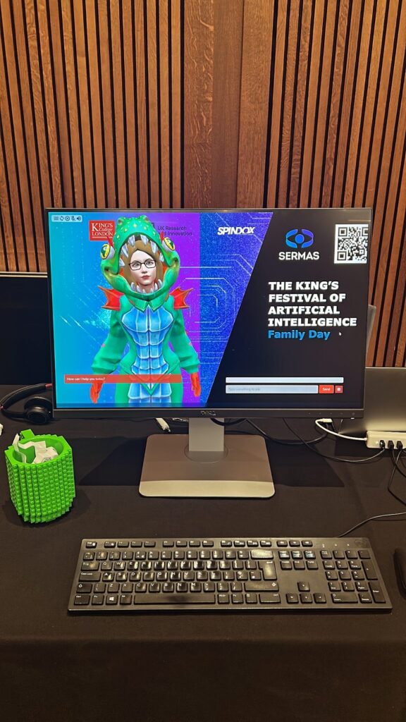 On May 24th, the SERMAS team showcased our innovative avatar at the King’s Festival of AI Family Day. This was a highly rewarding experience, allowing us to witness firsthand the positive impact our technology has on young audiences.